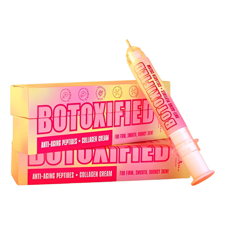 Botoxified – Crema Facial Ligera para Piel Suave y Firme Dale a tu piel un impulso de cuidado con Botoxified, una crema transparente y de textura ligera formulada con péptidos, ácido hialurónico y vitaminas E y A. Proporciona hidratación, suavidad y una sensación de firmeza para mantener un aspecto fresco y terso durante todo el día. Perfecta para la rutina de día y noche, se absorbe rápidamente, se integra de forma impecable bajo el maquillaje y aporta confort sin sensación grasosa. Beneficios principales Péptidos: favorecen una piel más firme y acondicionada. Ácido hialurónico: atrae y retiene la humedad para una hidratación profunda. Vitaminas E y A: ayudan a mantener la piel suave y protegida. Textura ligera: de rápida absorción y acabado no graso. Modo de uso: Aplicar mañana y noche sobre la piel limpia. Puede usarse sola o antes del maquillaje.