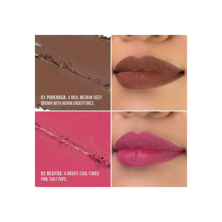 FIJACIÓN TOTAL – Labial Mate de Larga Duración Labios mate que permanecen impecables todo el día. Descubre Fijación Total, el labial mate de larga duración que ofrece un color intenso y se mantiene en su lugar. Su fórmula ligera y resistente a las transferencias se desliza con suavidad y se fija con un acabado mate aterciopelado que brinda comodidad durante horas. Ideal para cualquier ocasión —trabajo, brunch o una noche especial—, este labial se mantiene perfecto sin resecar los labios ni perder intensidad. Características: • Larga duración • Resistente a transferencias • Acabado mate suave • Textura ligera y cómoda • Disponible en 8 tonos intensos Modo de uso: Aplica Fijación Total Labial Mate directamente sobre los labios limpios y secos. Para obtener mejores resultados, deja que la fórmula se asiente durante 1 minuto completo; una vez seca, se fija para ofrecer un color duradero y cómodo. Úsalo solo o combínalo con tu delineador de labios Ultrafine favorito para una definición extra.